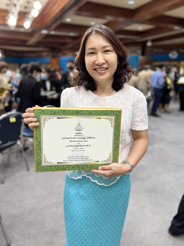 เนื่องในโอกาสวันคล้ายวันสถาปนามหาวิทยาลัยสุโขทัยธรรมาธิราช ครบรอบ 44 ปี ประจำปี 2565 รศ.ดร.เขมณัฏฐ์ มิ่งศิริธรรม อาจารย์ประจำสำนักเทคโนโลยีการศึกษา เข้ารับมอบเกียรติบัตรบุคลากรดีเด่น ในวันจันทร์ที่ 5 กันยายน 2565 ณ ห้อง 5209 อาคารสัมมนา โดยบุคลากรดีเด่นนับเป็นทรัพยากรบุคคลที่มีค่า ตั้งใจจริง เสียสละในการปฏิบัติภารกิจต่าง ๆ ที่รับผิดชอบด้วยจิตใจที่เปี่ยมลันด้วยความดีงาม