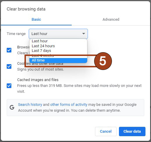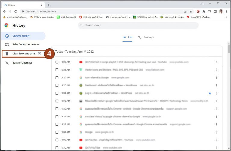 - คลิก Clear browsing data คลิก (จุดที่ 4)