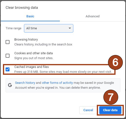 - คลิกเลือก Cached images files (ลบประวัติ Cached ทั้งหมด (จุดที่ 6)