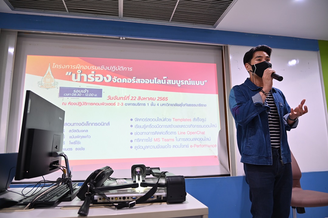 เมื่อวันที่ 22 สิงหาคม 2565  ศูนย์การเรียนการสอนทางอิเล็กทรอนิกส์ สำนักเทคโนโลยีการศึกษา มสธ. ได้จัดอบรมเชิงปฏิบัติการ  นำร่องจัดคอร์สออนไลน์ สมบูรณ์แบบ”  เพื่อให้อาจารย์และบุคลากรสายสนับสนุนของมหาวิทยาลัยสุโขทัยธรรมาธิราชได้รับความรู้ และสามารถบริหารจัดการ การจัดคอร์สออนไลน์ด้วย Templates สำเร็จรูปได้ โดยรับฟังการบรรยายและฝึกปฎิบัติจาก วิทยากรของศูนย์การเรียนการสอนทางอิเล็กทรอนิกส์ ณ ห้องฝึกปฏิบัติการคอมพิวเตอร์ 2-3 อาคารบริการ 1 ชั้น 4 มหาวิทยาลัยสุโขทัยธรรมาธิราช