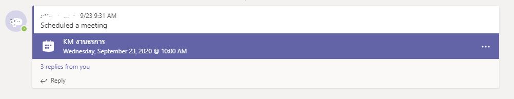 - สร้าง Meeting Schedule ใน Teams ที่ต้องการ โดยเลือก Schedule a meeting