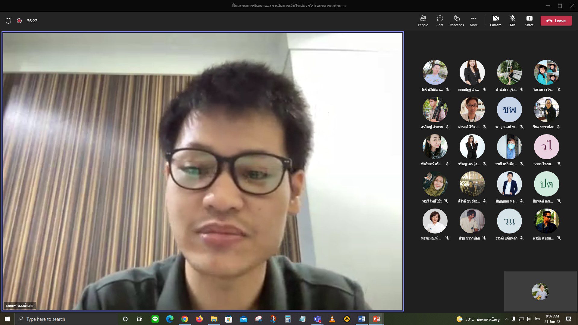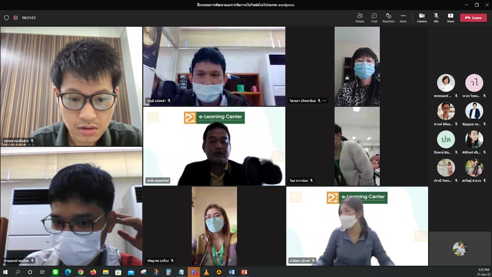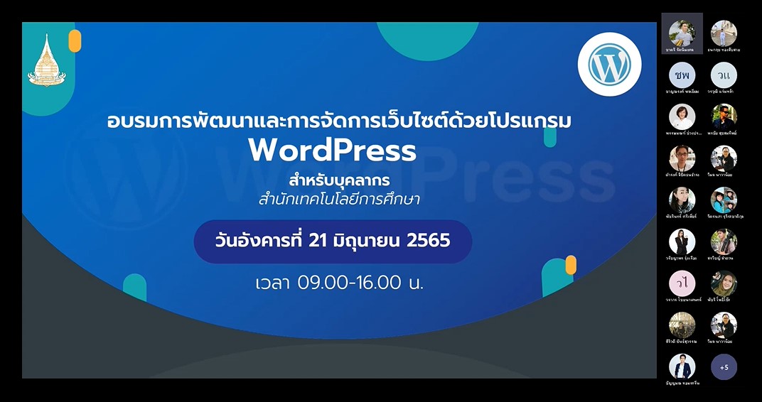 เมื่อวันที่ 21 มิถุนายน 2565 ศูนย์การเรียนการสอนทางอิเล็กทรอนิกส์ สำนักเทคโนโลยีการศึกษา ได้มีการจัดฝึกอบรมเชิงปฏิบัติการออนไลน์ผ่านโปรแกรม Microsoft Teams เรื่อง การพัฒนาและการจัดการเว็บไซต์ด้วยโปรแกรม wordpress ให้บุคลากรของสำนักเทคโนโลยีการศึกษา  เพื่อสามารถสร้างและจัดการเว็บไซต์ของหน่วยงานตนเอง